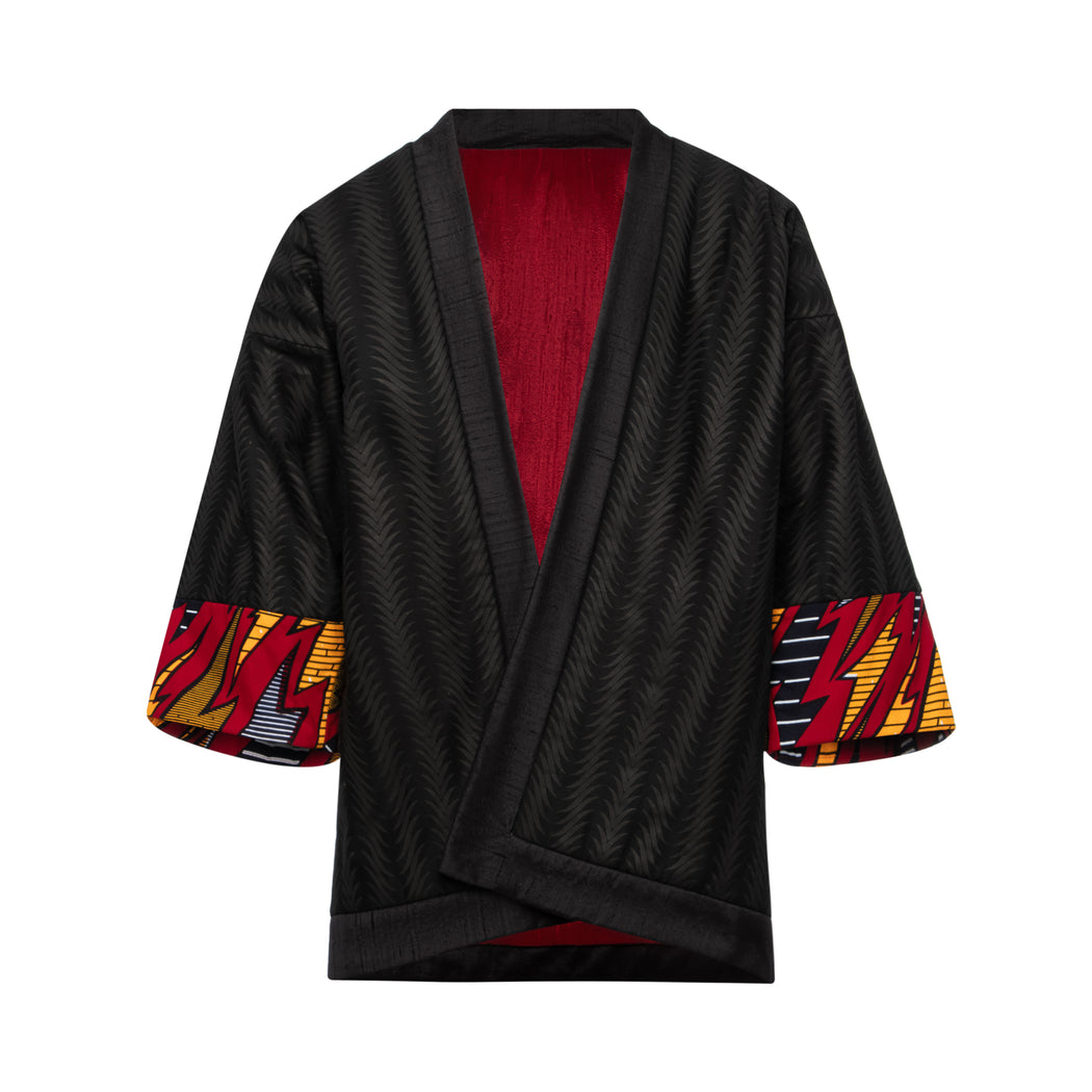 This DBS Flash Hanten is a vibrant Ankara fabric Hanten jacket that brings a superior blend of Japanese and African cultures to your wardrobe collection.
